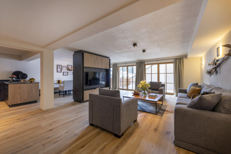 The decor of the apartment is a stylish blend of modern minimalism with artwork, lighting and wall pieces paying homage to Lech’s mountain heritage.
