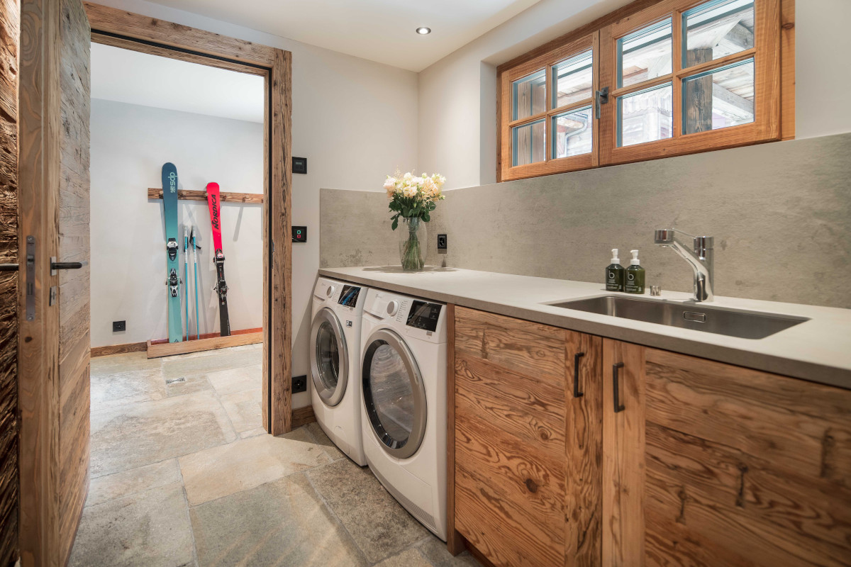 The entrance to the chalet on the ground floor provides all the amenities necessary for ease, with a spacious ski room, private laundry and sizeable garage.