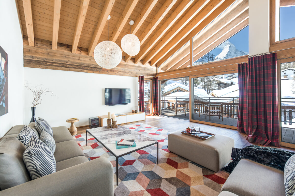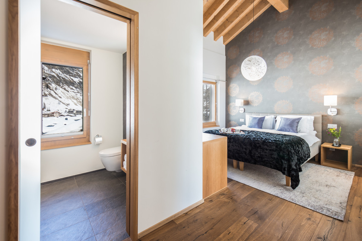 Penthouse Aria is a 240m² apartment in a small chalet-style residence near the centre of Zermatt. From its elevated third floor location, the apartment has amazing views over Zermatt and towards the Matterhorn. Showcasing the latest in contemporary Swiss mountain architecture and design, the interiors feature natural materials such as wood and stone married with contemporary furniture and fittings.